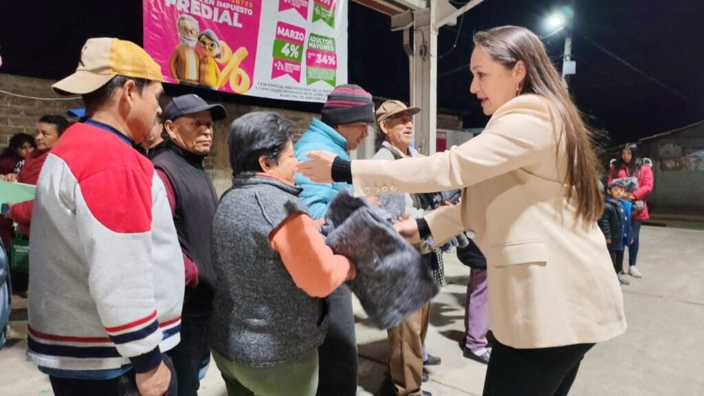 Amecameca, Méx.— La presidenta municipal de Amecameca, Ivette Topete García, realizó la entrega de más de 200 cobertores a habitantes de la delegación La Aldea de los Reyes, como parte del programa invernal dirigido a proteger a las familias de las zonas más frías del municipio.